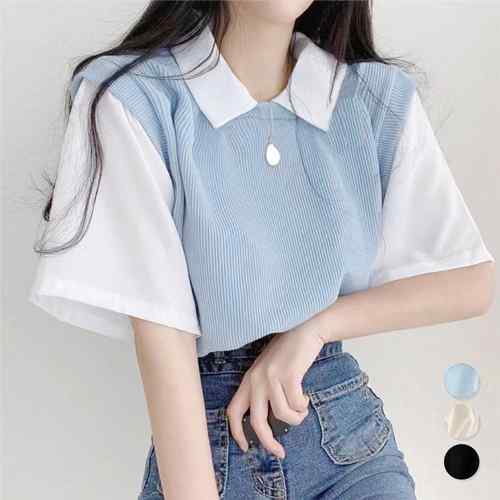 レディース 襟付きトップス バイカラーカットソー 切り替えシャツ 韓国プルオーバー大人カジュアル 体型カバー 夏服配色 半袖カットソー通学 オフィスカジュアル 重ね着風Tシャツ夏