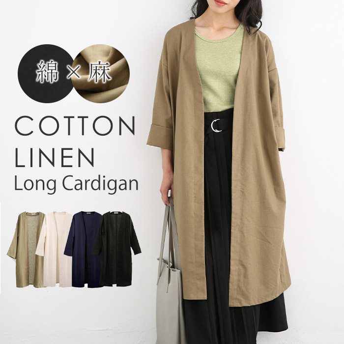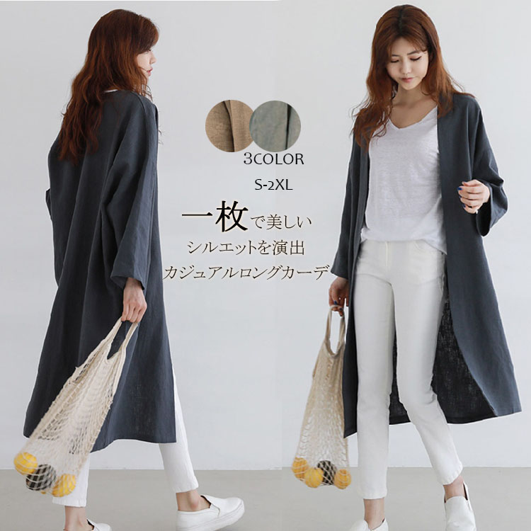 カーディガン ロング レディース カーディガン 春物 リネン シャツ 麻 コート アウター ロング丈 ゆったり 羽織り ロング 長袖 オーバーサイズ ノーカラー トレンド シンプル 春 秋