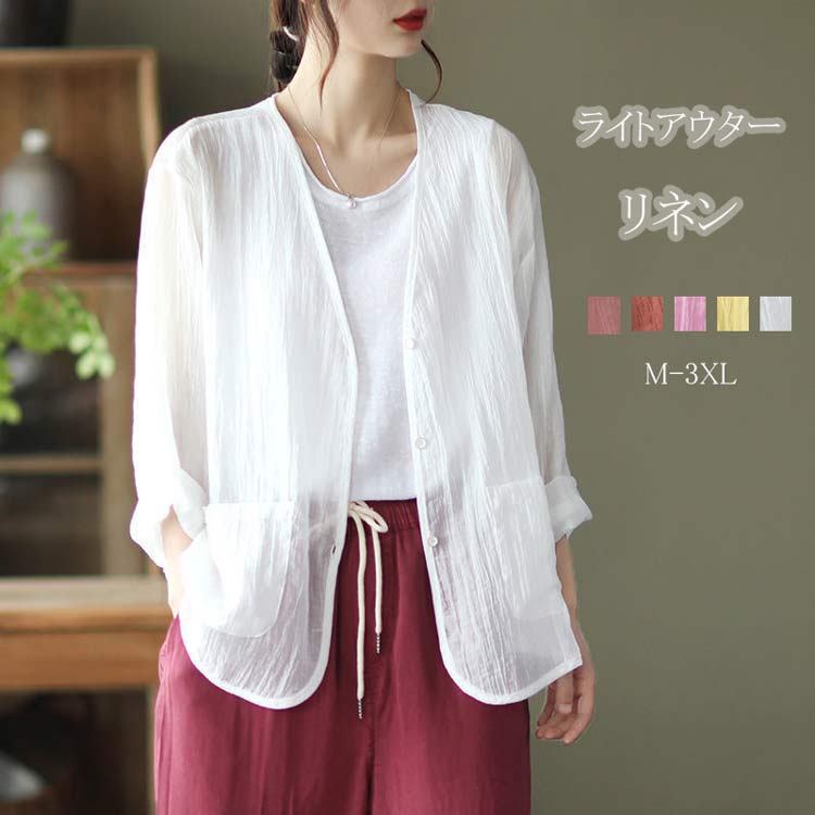 ジャケット レディース 夏 秋 長袖 7分袖 8分袖 M~2XL トレンチジャケット ロングジャケット 体型カバー ゆったり 軽量 薄手 羽織り ライトアウター UV対策 冷房対策 アウター