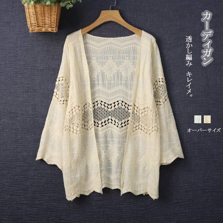 サマーカーディガン レディース レース ショート丈 涼やか 透かし編み レイヤード トップス コーデ 大人可愛い ゆったり 20代 30代40代