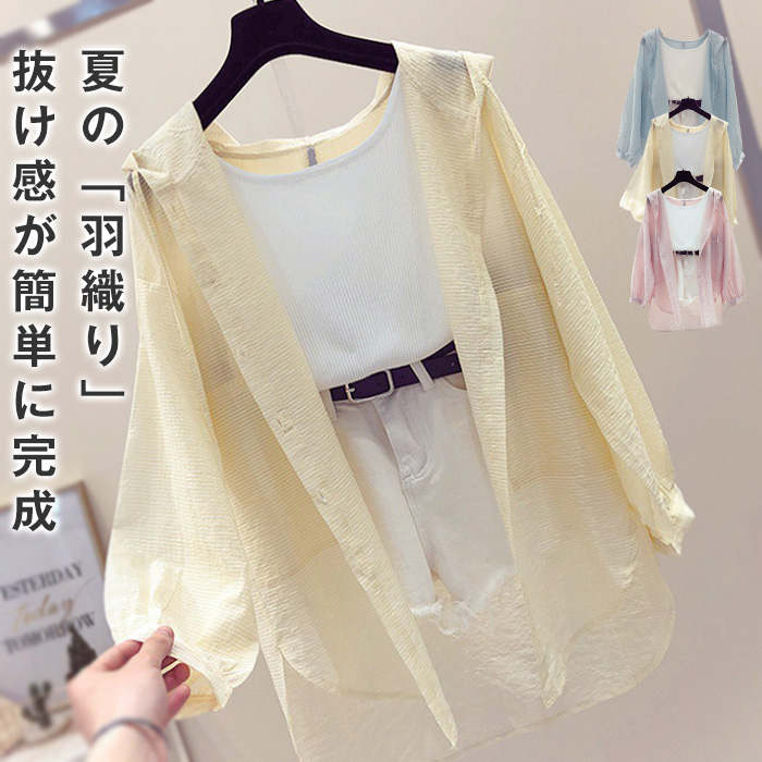 着回し力抜群透け感がある可愛いシャツ 羽織 カーデ 腕カバー力抜群 着痩せ 体型カバーがいい 20代 30代 40代