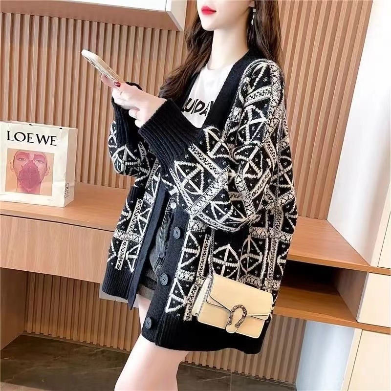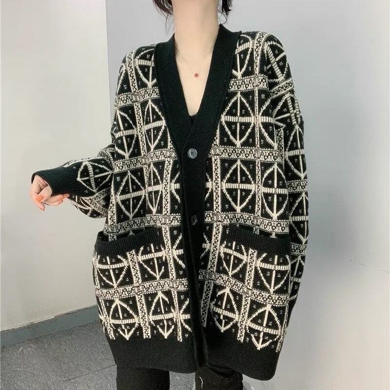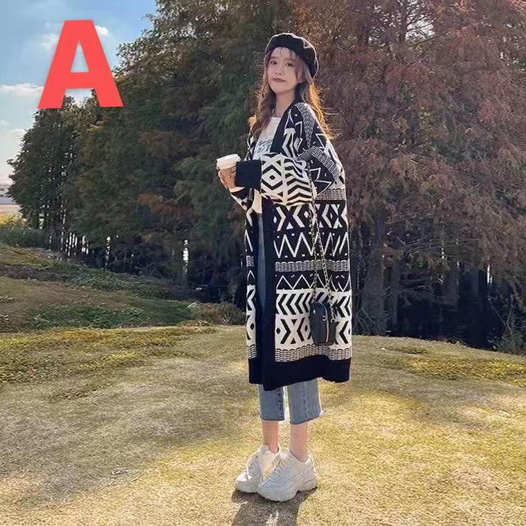 カーディガン ニット トップス アウター レディース 秋冬 総柄 ロングコートレディースファッション トップス カーディガン ボレロ