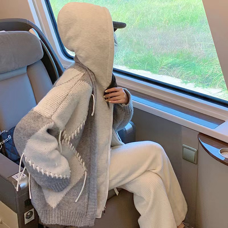 カーディガン ニット トップス フード付き セーター ニットカーデ ニットカーディガン 無地 重ね着風 切替 秋 冬大きいポケット レディース 長袖 ゆったり かわいい グレー ブラウン
