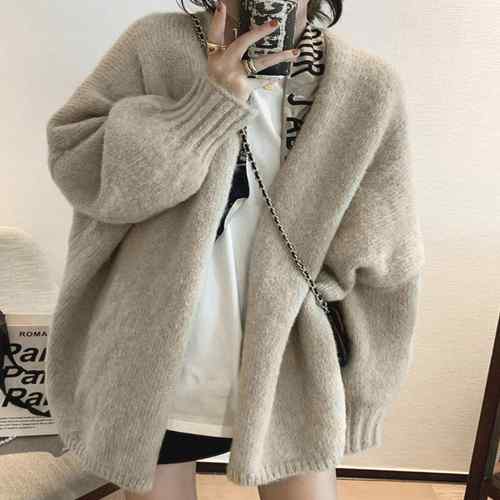レディーストップス ゆったり 長袖 ミドル丈 体型カバー 暖かいアウター カジュアル 通勤通学 おしゃれ きれいめ服 ニットカーディガン 大人女性秋コーデ 無地 韓国カーデ