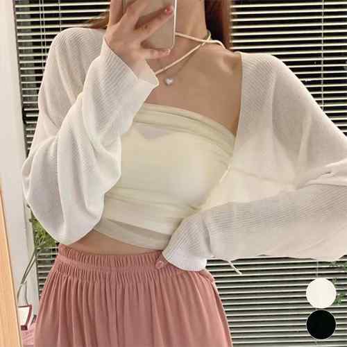 レディース クロップド丈 リブニットカーディガン 冷感タッチ 夏トップス 紫外線対策 サマーニット カジュアル おしゃれ カーデ薄手きれいめ 春秋夏短丈羽織韓国 トップス UVケア