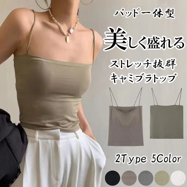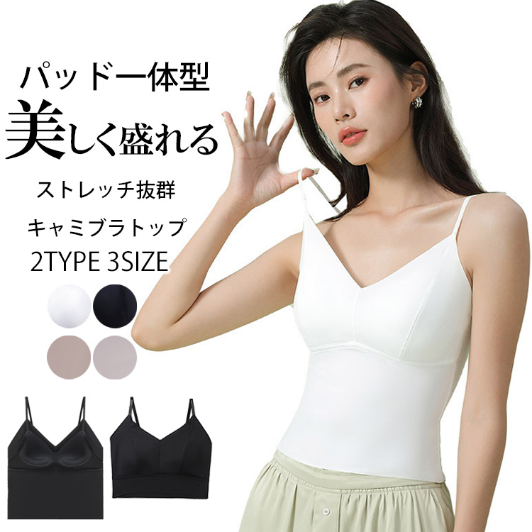 選べる丈感 キャミブラトップ パッド一体型 冷感 ブラトップ ショート丈 ロング丈 インナー パッド付き 美しく盛れる 楽々 盛れる