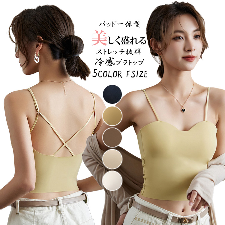 バックオープン キャミブラトップ レディース 冷感 チューブトップ ストラップ 調整可能 カップ付き へそだし インナー