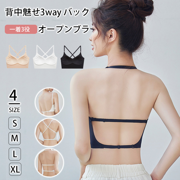3 バックオープンブラ キャミブラトップ バックストラップ 背中見せ パッド一体型 ブラトップ バッククロス ホルターネック 盛れる