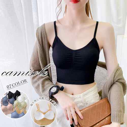 へそ出し ブラキャミ ショート丈 レディース キャミタンクトップス ノンワイヤー 着回し ブラトップ 大人可愛い無地下着 インナー キャミ キャミソール重ね着 見せるキャミソール