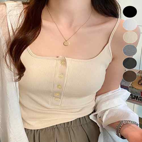 ブラキャミ キャミソール 胸元セクシー インナートップス リブ綿混素材 ボタン 肌着 柔らかい ストレッチ 無地トップス レイヤードコーデ夏 無地快適着回し下着 細肩紐キャミソール
