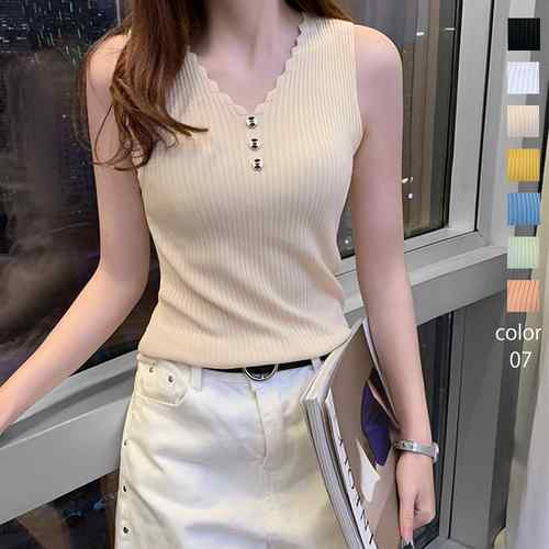 タンクトップ Vネック ノースリーブ インナー シンプル ニットキャミソール レディース 肩出し トップス リブ ニット ニット トップス トップス 春秋夏