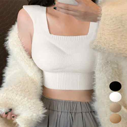 タンクトップ ネック ノースリーブ インナー シンプル ニットキャミソール レディース 肩出し トップス リブ ニット ニット トップス トップス 春秋夏