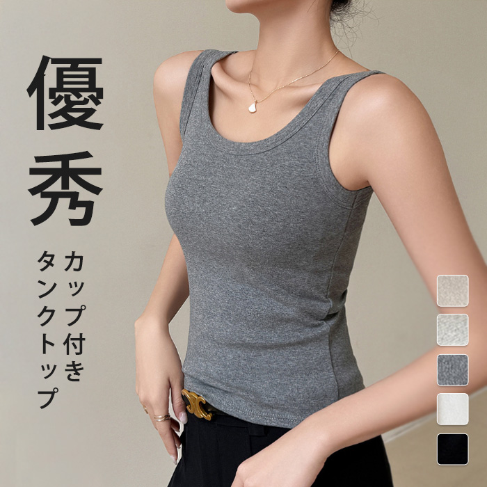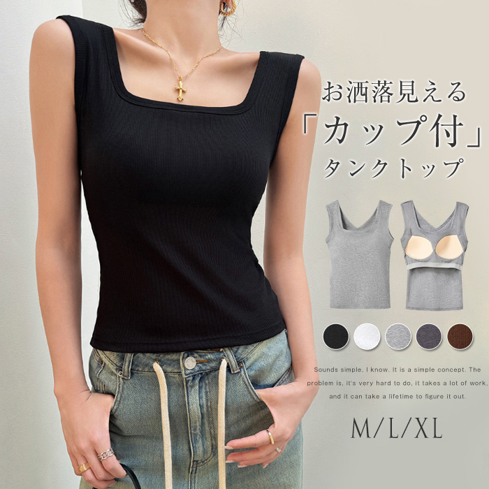タンクトップ レディース カップ付き インナー ショート丈 カットソー トップス ノースリーブ ノンワイヤー ストレッチ 重ね着 シンプル リブ 無地 スクエアネック ニット レイヤード カジュアル