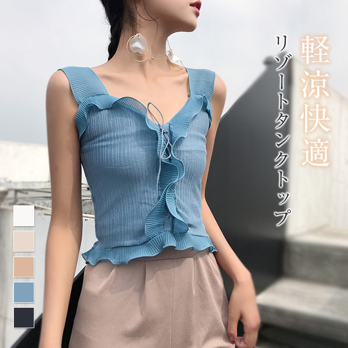 リゾートタンクトップ レディース トップス ノースリーブ キャミソール 遊び 旅行 海 沖縄 ハワイ 着痩せ エレガント