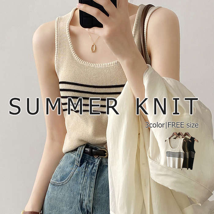 サマーコーデ ファッション単品 ニットタンクトップ Summer knit ♪レディースファッション トップス タンクトップ