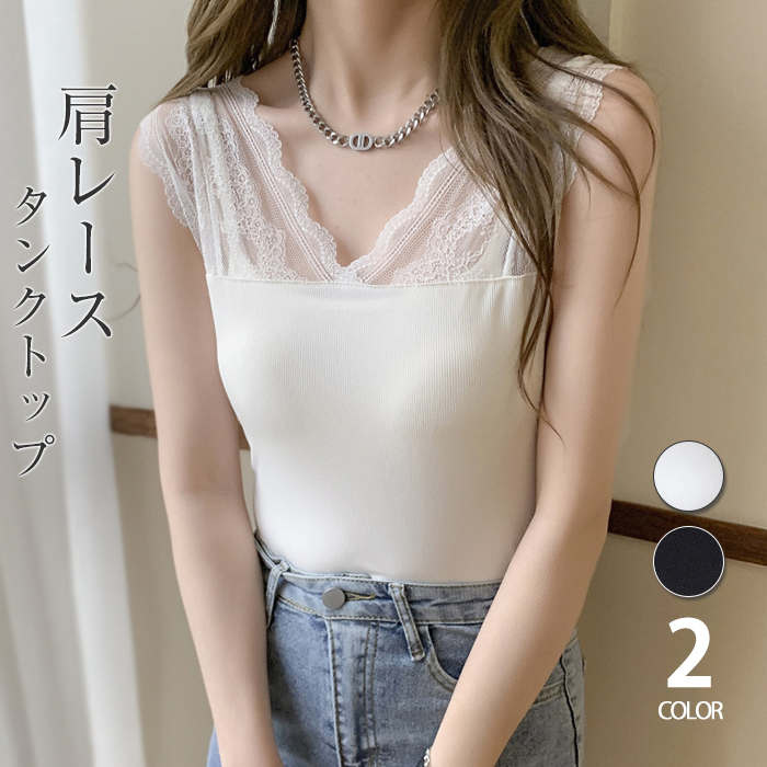 レディース用のノースリーブトップスです 肩から胸元がレースになっているのがおしゃれ♪ インナーとして、重ね着にも使えます