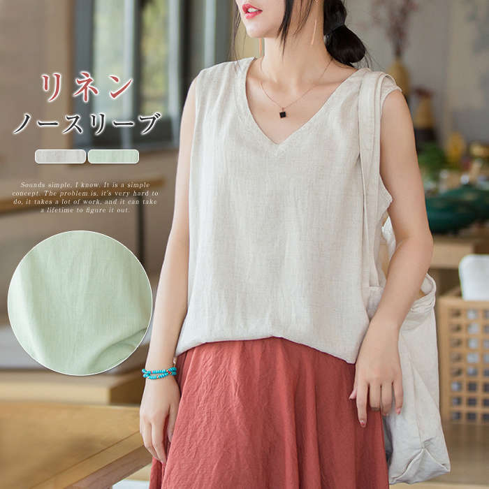 綿麻タンクトップ レディース ノースリーブ Linen camisole レディースファッション ♪