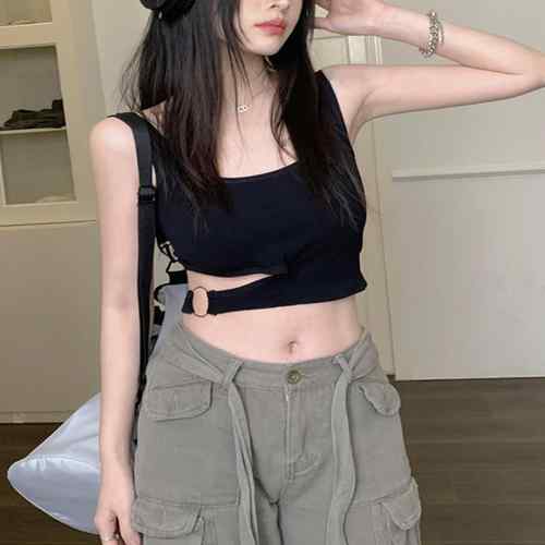 サイドカットアウト タンクトップ ショート丈 インナートップス 韓国 見せインナー カジュアル重ね着 へそ出し セクシー ブラトップバック 着やせキャミソール タイト ダンス衣装