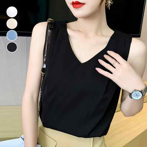 Vネック ゆったり ノースリーブトップス 涼しい 薄手 きれいめ ブラウス オフィスカジュアル 体型カバー 重ね着 フォーマル夏服通勤 大人上品肩のタック 無地タンクトップ