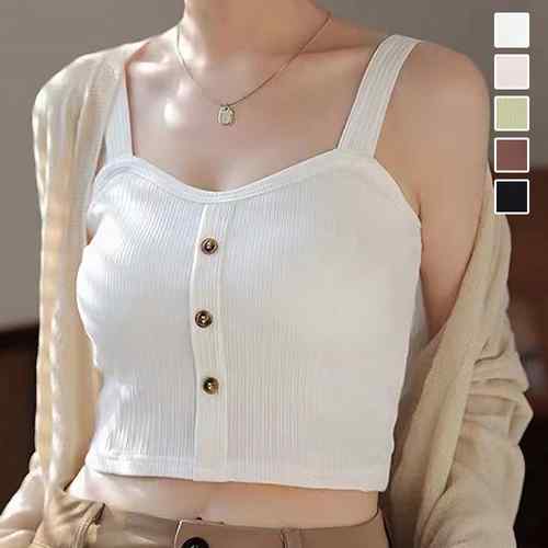 ブラキャミ ブラトップ トップス へそ出しキャミ ボタン セクシー 肌着 無地 カジュアル 胸元 大人 おしゃれ インナートップス ショート丈トップス 見せインナー 夏服