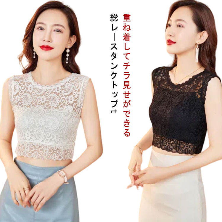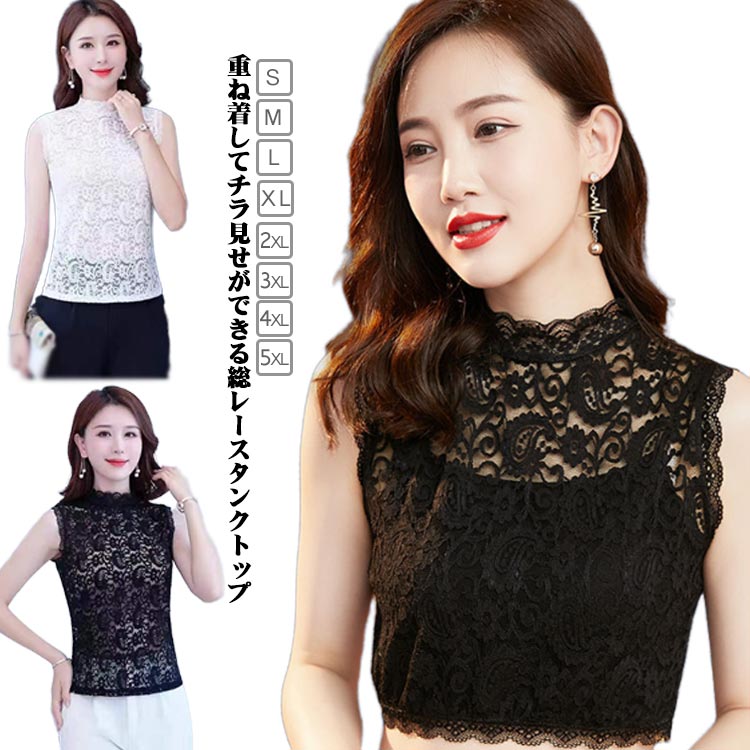 総レース ハイネック レディース キャミソール 重ね着レース 無地 インナー タンクトップ つけ襟 大人可愛い白 薄手 ストレッチ 春夏 花柄