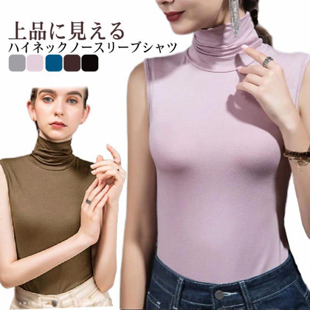 タートルネック tシャツ タンクトップ ノースリーブ 夏 春 秋 冬 インナー カットソーレディースファッション トップス タンクトップ
