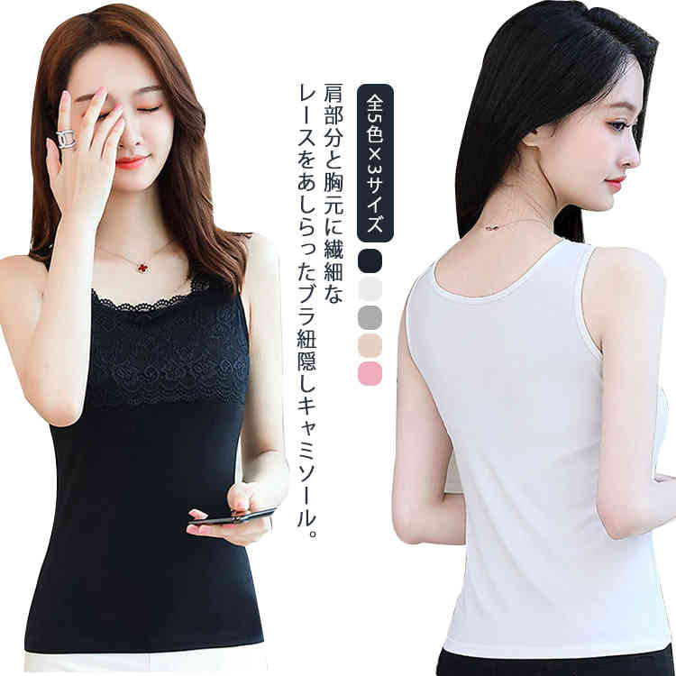 見せインナー レイヤードコーデに最適 レースタンク 下着 大きいサイズ 美デコルテ ストレッチレディースファッション トップス タンクトップ
