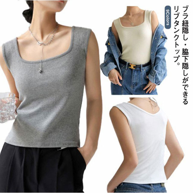 脇スッキリ♪ 脇高タンクトップ ブラ紐を隠せる インナー ブラ紐隠し 脇下隠し 薄手 春夏 キャミソール