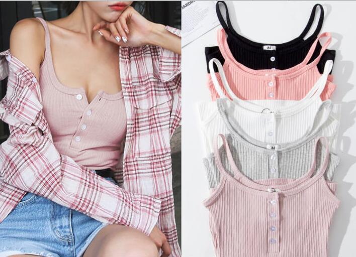 タンクトップ フロントボタン 夏物 レイヤード風 可愛い 普段着 お洒落レディースファッション トップス タンクトップ
