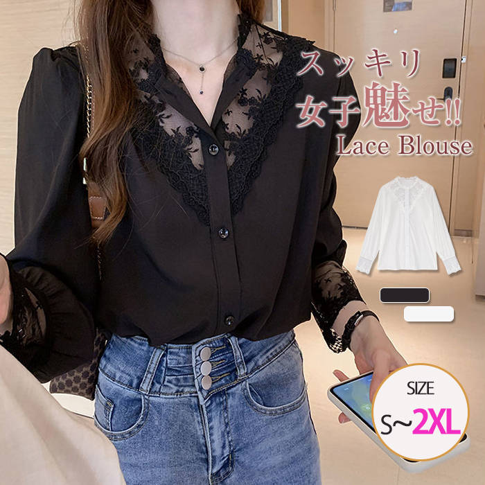 レディース トップス 長袖 セクシー オールシーズン おしゃれ 立ち襟 オフィス 花柄刺繍 きれいめ 通勤 結婚式 披露宴