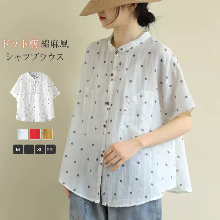 シンプルで落ち着いたデザインの綿麻シャツ 肌触りの良い綿麻の素材で暑い季節も快適 レディースファッション トップス シャツ ブラウス