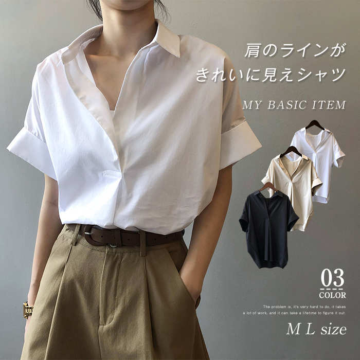 コットン素材で着心地も印象も爽やか♪こなれ感たっぷりのコーデを楽ちん 無地シンプルなカジュアルシャツ レデイース トップス サマーシャツ ゆったり シャツブラウス