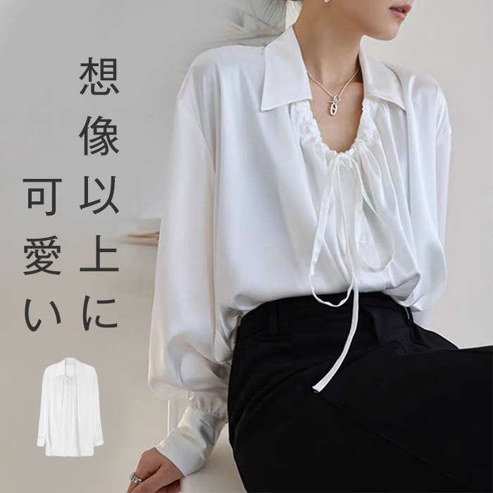 ブラウス ボウタイ 長袖 レディース ネック シャツ フォーマル オフィス 春秋 大人 きれいめ お洒落 通勤 ビジネス スーツインナー ショート丈 シンプル とろみ エレガント フェミニン カジュ
