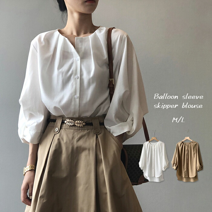 ボリューム袖ブラウス トップス レディース シャツ シンプル バンドカラー ボリュームスリーブ 無地