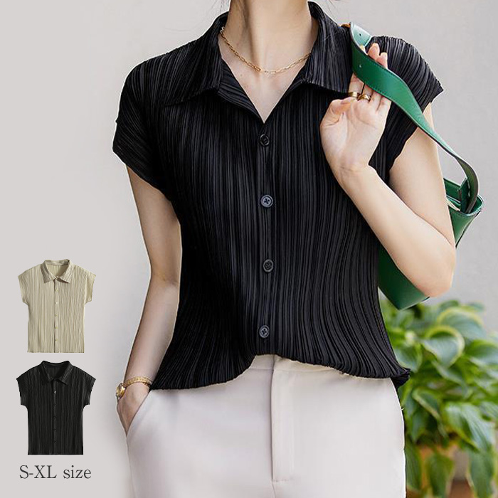 フロントのピンタックデザインがフェミニンなブラウス お仕事やお出かけ、セレモニーなどのきれいめスタイルに大活躍♪