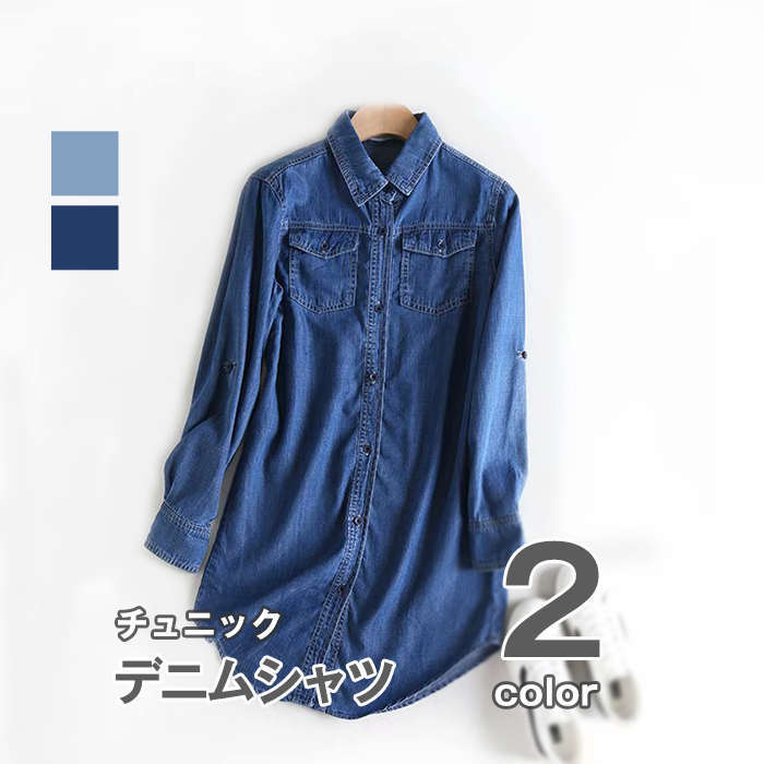 シャツ レディース デニム 長袖 ブラウス チュニック 春 夏 トップス 羽織り きれいめ お洒落 折り襟 大人 カジュアル シンプル 前開き 体型カバー オールシーズン 大きいサイズ ゆったり 春秋