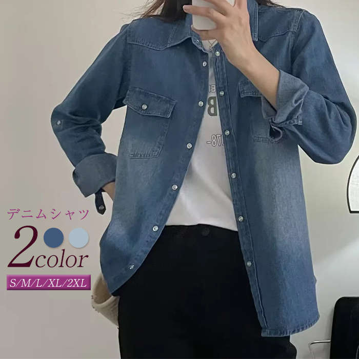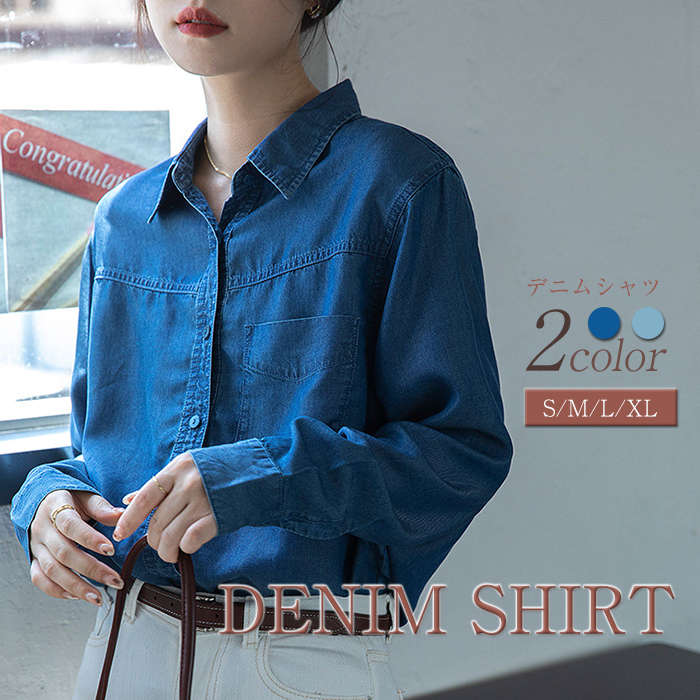 コットン素材のデニムシャツ 流行に左右されず定番で愛用できるベーシックデザインです レディースファッション トップス シャツ ブラウス
