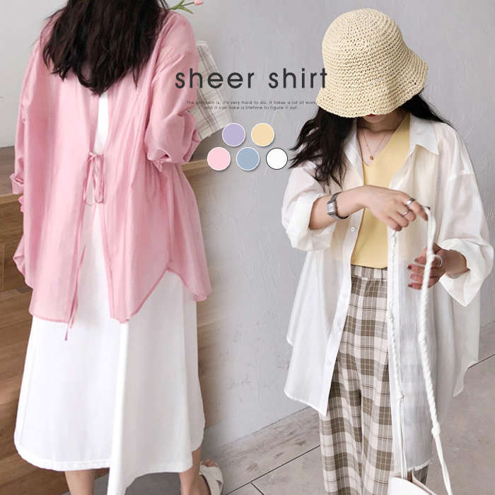 Sheer shirt 春夏新品シアーシャツ 着回し 万能ブラウス ♪レディースファッション トップス シャツ ブラウス