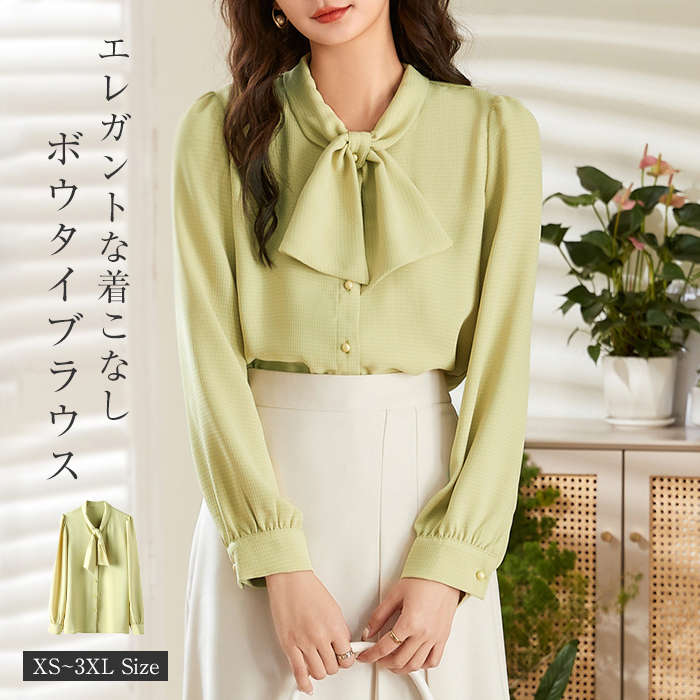 胸元のボウタイがアクセントになった長袖ブラウス どんなアイテムとも合わせやすく、 様々なシーンで活躍します