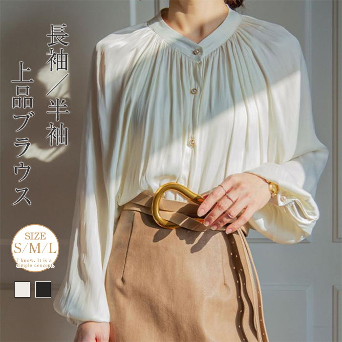 一枚で女っぽく仕上がるブラウス 首元のタック使いで上品な印象を醸し、華やかな印象に レディースファッション トップス シャツ ブラウス