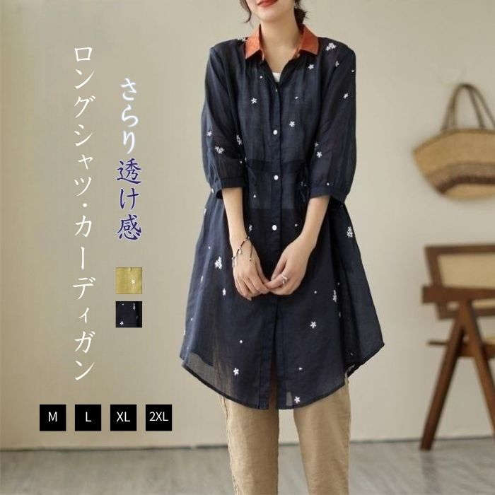 シャツ ロング シースルー レディース 夏 カーディガン サマーカーディガン 対策 ロングシャツ ブラウス チュニック 着回し 大人 カジュアル ゆったり