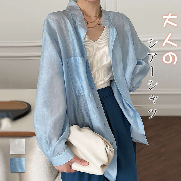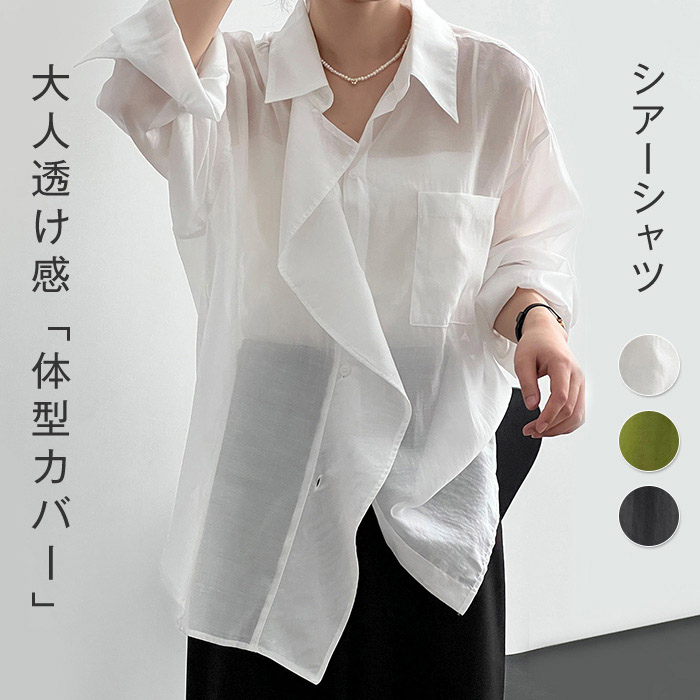 シアーシャツ レディース 透け感 長袖 ブラウス シアー シャツ 春 夏 オーバーサイズ シースルー シースルー ビッグシルエット ゆったり 清涼 羽織トップス 体型カ バー 冷房対策 きれいめ おし