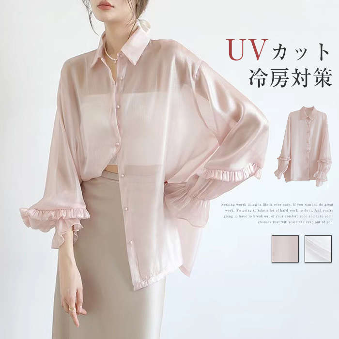 日焼け対策~ 冷房対策~ 大人の サマーアウター Summer blouse ホワイト 白 ピンク 接触冷感 UVカット 日焼け止め UV対策 日焼け対策 紫外線対策 冷房対策 洗える ♪