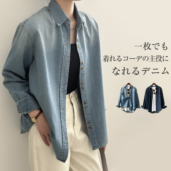 シャツ デニム レディース 長袖 トップス ブラウス ゆったり きれいめ お洒落 春 夏 秋 デニムシャツ ショート丈 アウター 羽織り カーディガン 通勤 カジュアル 体型カバー シンプル 薄手 無