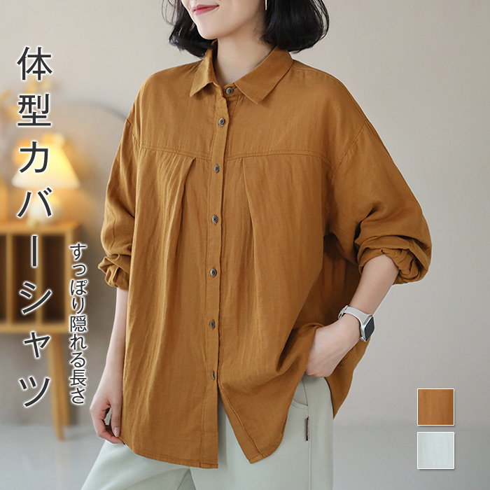 シャツ レディース ブラウス 長袖 おしゃれ ダブルガーゼ ガーゼシャツ 春秋 折り襟 トップス 羽織 ゆったり 体型カバー きれいめ 抜き襟 オーバーサイズ フォーマル オフィス 通勤 着やせ 前開