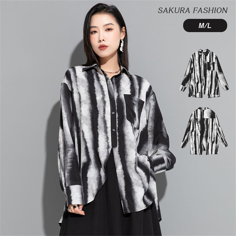 シャツ シャツブラウス レディース トップス ブラウス 羽織り 長袖 柄 総柄 大きいサイズ ゆったり 秋 個性派 バックスリット 長袖シャツ