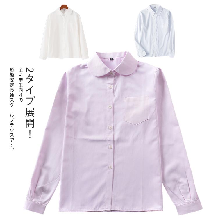 スクールシャツ レディース レギュラーカラー 丸襟 学生服 お洒落レディースファッション トップス シャツ ブラウス
