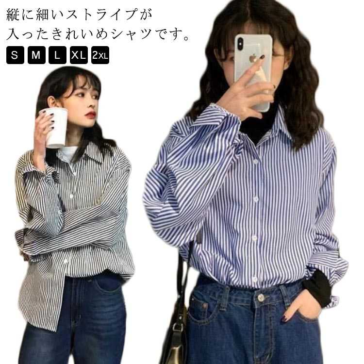 長袖 ブルー トップス カラーシャツ ブラック カジュアル ブラウス ストライプシャツ ストライプシャツ ストライプ シャツ 30代 レディース 通勤 きれいめ シンプル 大人 20代 OL 40代