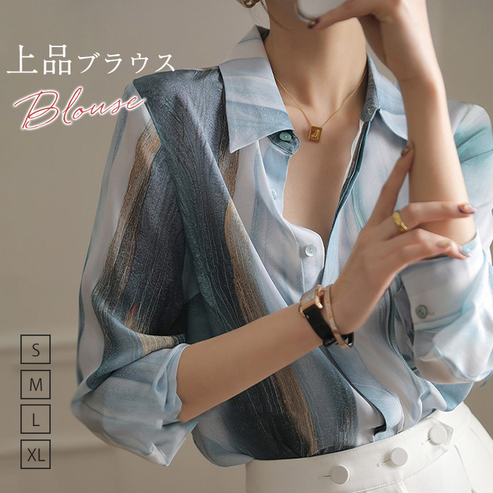 ブラウス レディース シャツ スーツ 春夏 オシャレブラウス 配色 長袖 トップス 前開き シルク インナー ふんわり 薄手 フォーマル 上品 カジュアル 大人 通勤 コーデ シンプル ゆったり