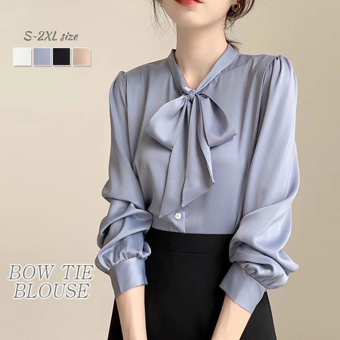 長袖リボンブラウス シャツ 上品でフェミニンな女性を演出できる♪レディースファッション トップス シャツ ブラウス